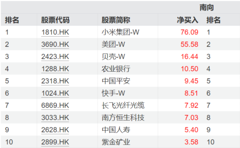 南向资金持续流入港股科技板块:近七日,小米集团-W累计获76.09亿港元的净买入,位居南向资金近7日净买入榜首!美团-W、快手-W也均位居近7日南向资金净买入榜前十。