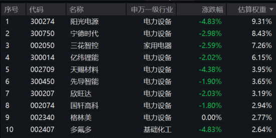 【电池50ETF(159796)标的指数前十大成分股】