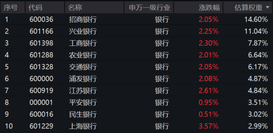 银行ETF龙头(512820)标的指数全线上涨,上海银行、渝农商行等涨超3%,招商银行、兴业银行、工商银行、建设银行、农业银行等涨超2%,中国银行等强势跟涨!