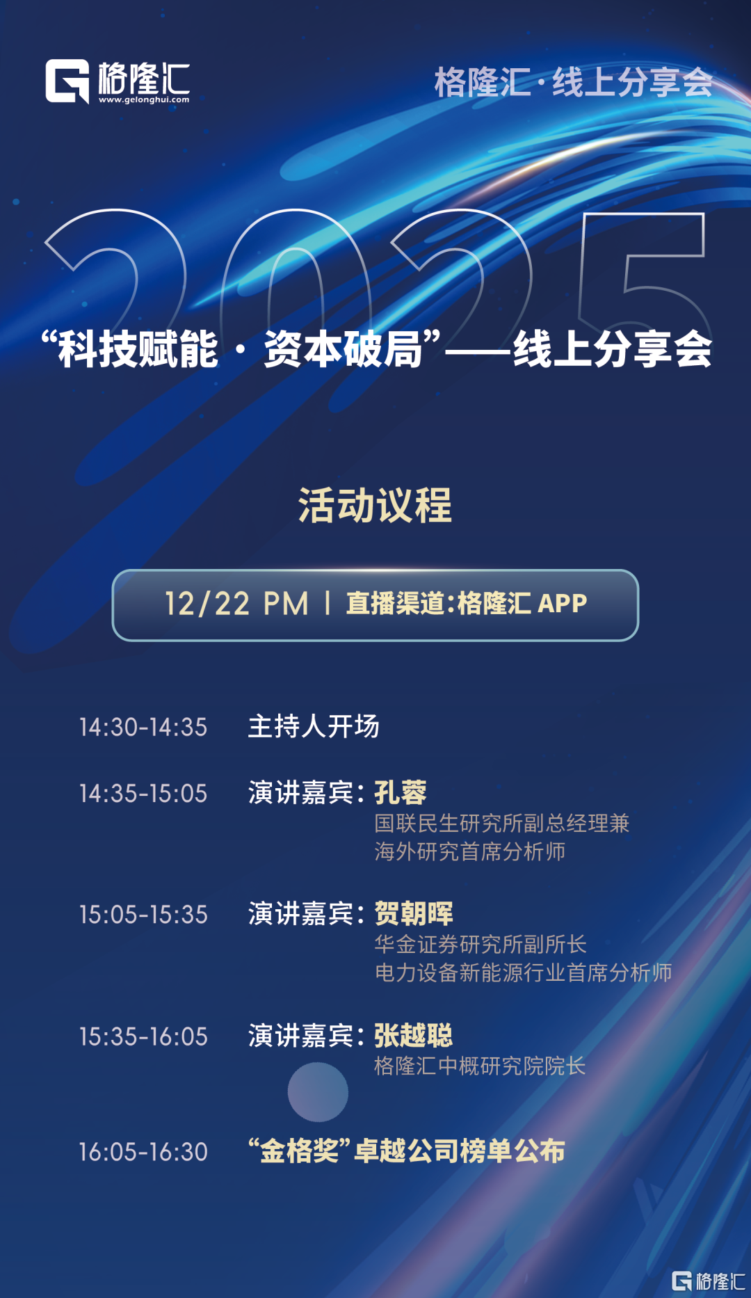 值此历史性转折期,格隆汇将于2025年12月22日星期一下午举办【“科技赋能·资本破局”——线上分享会】。