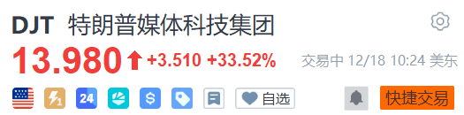 该公司宣布将以超过60亿美元的价格并购核聚变初创公司TAE Technologies。受此消息刺激,该公司股价一路飙升。截止发稿,特朗普媒体科技集团暴涨超33%,报13.98美元,总市值超39亿美元。