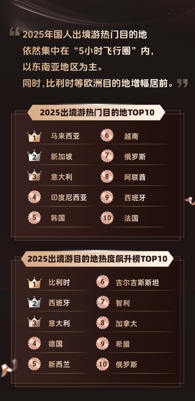 马来西亚位居2025出境游热门目的地榜首,热度飙升榜比利时等欧洲目的地居前