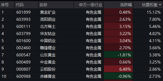 风险提示:基金有风险,投资需谨慎。投资人应当阅读《基金合同》《招募说明书》《产品资料概要》等法律文件,了解基金的风险收益特征,特别是特有风险,并根据自身投资目的、投资经验、资产状况等判断是否和自身风险承受能力相适应。基金管理人承诺以诚实信用、谨慎尽责的原则管理和运用基金资产,但不保证基金一定盈利或本金不受损失。以上基金属于中等风险等级(R3)产品,适合经客户风险承受等级测评后结果为平衡型(C3)及以上的投资者。请投资者关注指数化投资的风险以及集中投资于细分有色指数成分股的持有风险,请关注部分指数成分股权重较大、集中度较高的风险,请关注指数化投资的风险、ETF运作风险、投资特定品种的特有风险等。文中提及个股仅为指数成份股客观展示列举,本文出现信息只作为参考,投资人须对任何自主决定的投资行为负责。本文中的任何观点、分析及预测不构成对阅读者任何形式的投资建议。