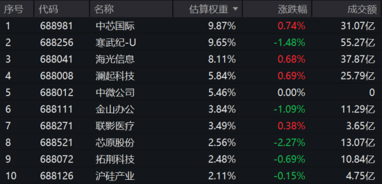 截至收盘,科创50指数ETF(588870)标的指数热门成分股涨跌互现:中芯国际、海光信息、澜起科技、联影医疗微涨;下跌方面,寒武纪-U、金山办公跌超1%。