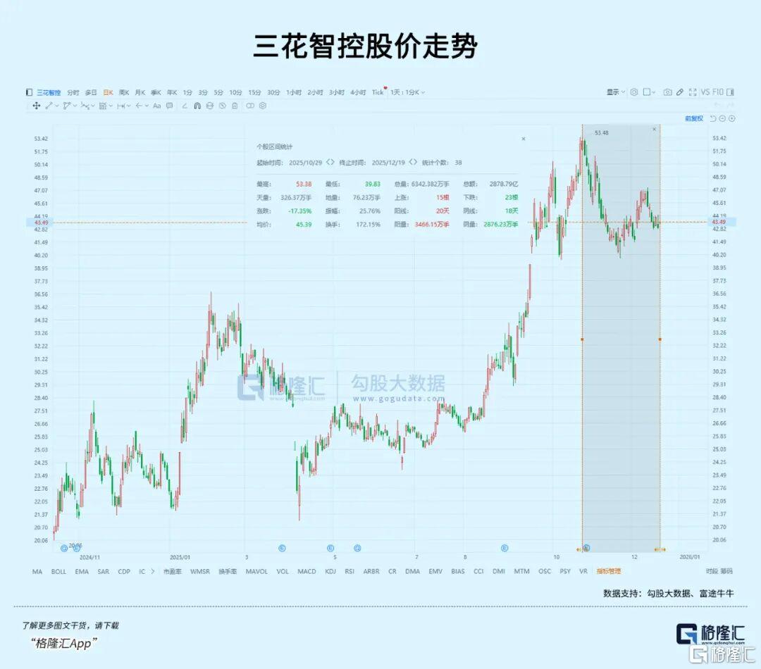 三花作为执行器的核心供应商,肯定会受到市场重点关注。即便如此,10月份特斯拉财报公布并放缓机器人量产预期之后,三花股价从高点调整迄今,接近18%。