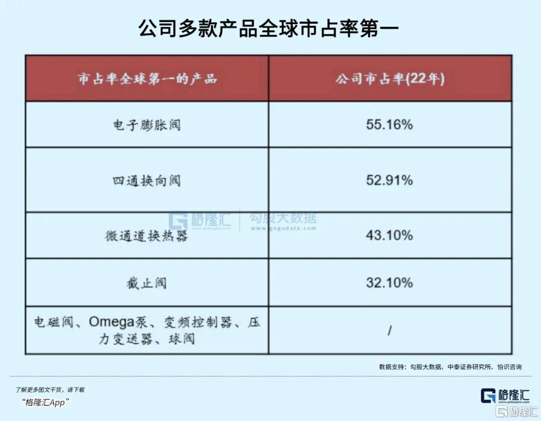 根据招股书,三花是全球最大的制冷空调控制元器件制造商,市场占有率约为45.5%;在全球汽车热管理系统零部件市场的市场占有率约为4.1%,全球排名第五。