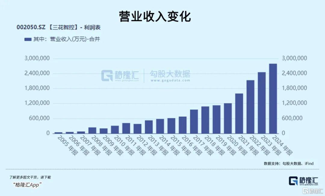 2015年以前,通过产能扩建和并购,公司实现对制冷空调控制元器件产品的全面覆盖,已经是该领域的全球龙头。2017年是三花智控财务历史上的分水岭。这一年,公司将汽车零部件业务注入上市公司,正式开启了“双轮驱动”时代。