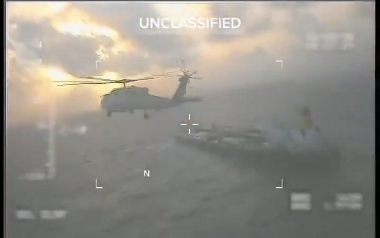 诺姆还发布了一段视频,画面似乎显示美军人员从直升机索降至船只甲板。