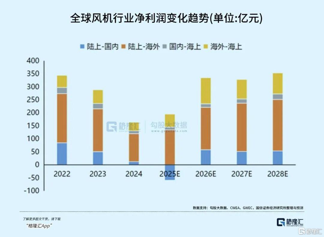 利润方面,国内陆上风机因为价格回升,盈利增长特别快,每年平均增速能到45%,2026年将是主要的增长年份;而海外陆上风机市场规模更大,到2028年利润会达到198亿元,会成为国内风机企业业绩增长的重要支撑。