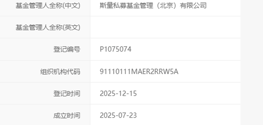据中国证券投资基金业协会信息,2025年12月15日,斯量私募基金管理(北京)有限公司完成私募管理人登记,正式具备展业资质。该公司由城堡基金(Citadel)前资深量化研究员张峰掌舵,其持股80%为实际控制人,投资总监孙一共同构成核心管理团队。