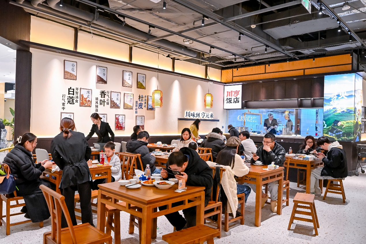 孩子王、宝贝王、鸭小七、安踏kids、李宁young、balabala等亲子品牌,覆盖了儿童成长与家庭生活的多元场景。餐饮选择同样丰富,海底捞、仙踪林鲜菌汤、潮牛行动、川亨饭店、李嬢嬢烙锅、农冒食厂等品牌,组成了满足不同口味的餐饮矩阵。同时,野猪细作、瑞幸等咖啡与烘焙品牌,为快节奏的都市生活带来一份惬意的调剂。