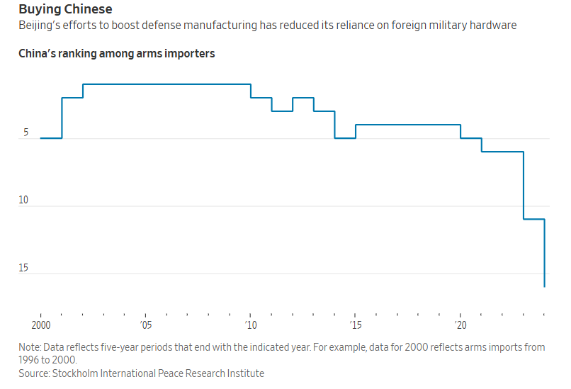但根据Sipri的数据,中国在全球武器进口中的占比已经大幅下降,近年来已对掉出全球前十大买家。
