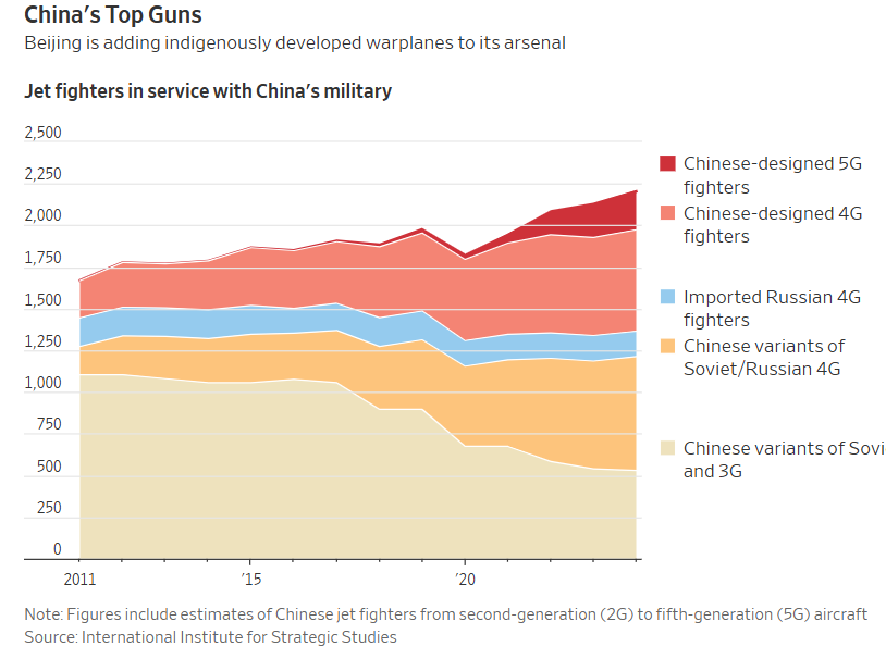 分析人士指出,中国距离全面为军队配备国产装备仍有一段路要走。苏联和俄罗斯设计的飞机仍占据中国现役库存的重要份额,包括战略轰炸机。许多中国战机和直升机仍使用外国设计的发动机。