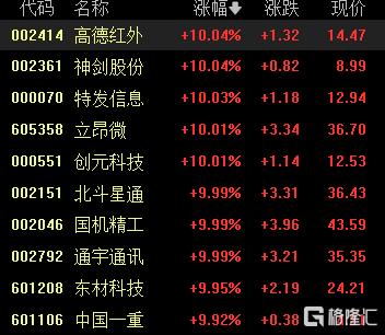 商业航天概念股继续活跃,高德红线、神剑股份、特发信息、立昂微、创元科技、北斗星通、国机精工、通宇通讯、东材科技等多股涨停。