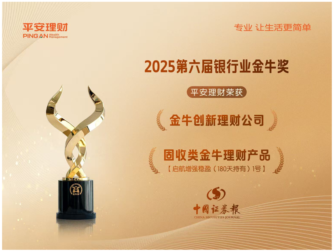 12月19日,由《中国证券报》主办的“2025财富配置与资产管理大会”暨“第六届银行业金牛奖”颁奖典礼在深圳举办。凭借着专业精进的投研能力、富有竞争力的产品矩阵、持续迭代的数字科技等优势,平安理财荣获“金牛创新理财公司”,旗下“启航增强稳盈(180天持有)1号”摘得“固收类金牛理财产品”荣誉。