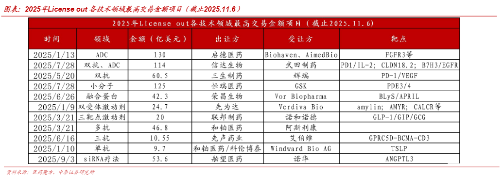 然而,2025年的交易显示,单纯的“性价比”已不足以支撑巨额交易,MNC愿意支付超高溢价的,是那些具备全球竞争力和临床差异化优势的稀缺资产。例如,三生制药的PD-1/VEGF双抗能以高达60.5亿美元的总金额授权给辉瑞,关键就在于其突出的临床数据所展现的“同类最佳”潜力,这使其在激烈的同靶点竞争中脱颖而出。同时,能够解决现有疗法耐药问题或针对全新机制的双毒素ADC、TCE等前沿技术,也成为MNC重金押注的稀缺资源。MNC对中国创新药的评估,正从过去的“性价比”采购,转向为“稀缺性”支付溢价。这种逻辑重塑,背后反映的是中国创新研发实力“质”的跨越,同时深刻影响着国产创新药的出海定价与合作模式