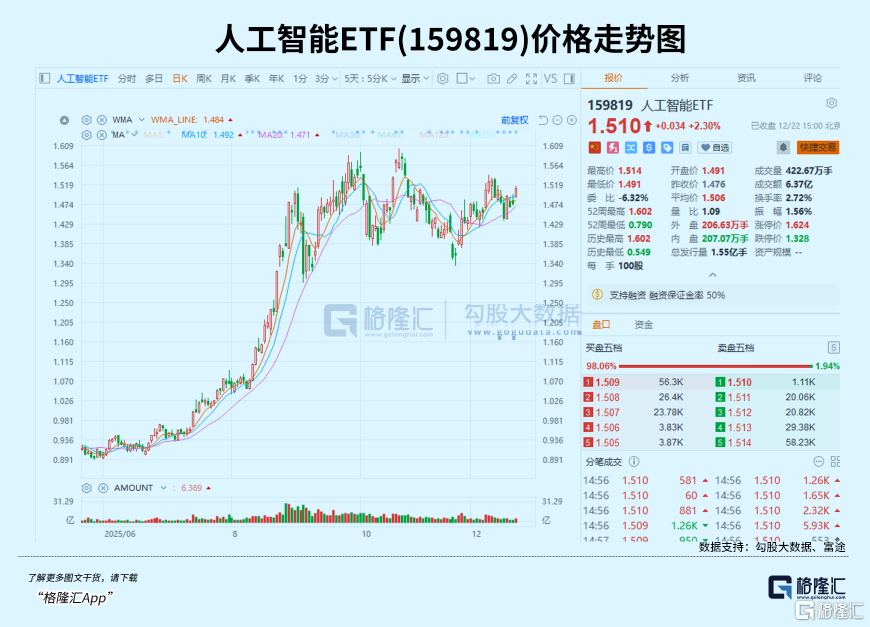 数据显示,人工智能ETF(159819)在今年内已经累计上涨65.93%,表现在多数ETF中领先。
