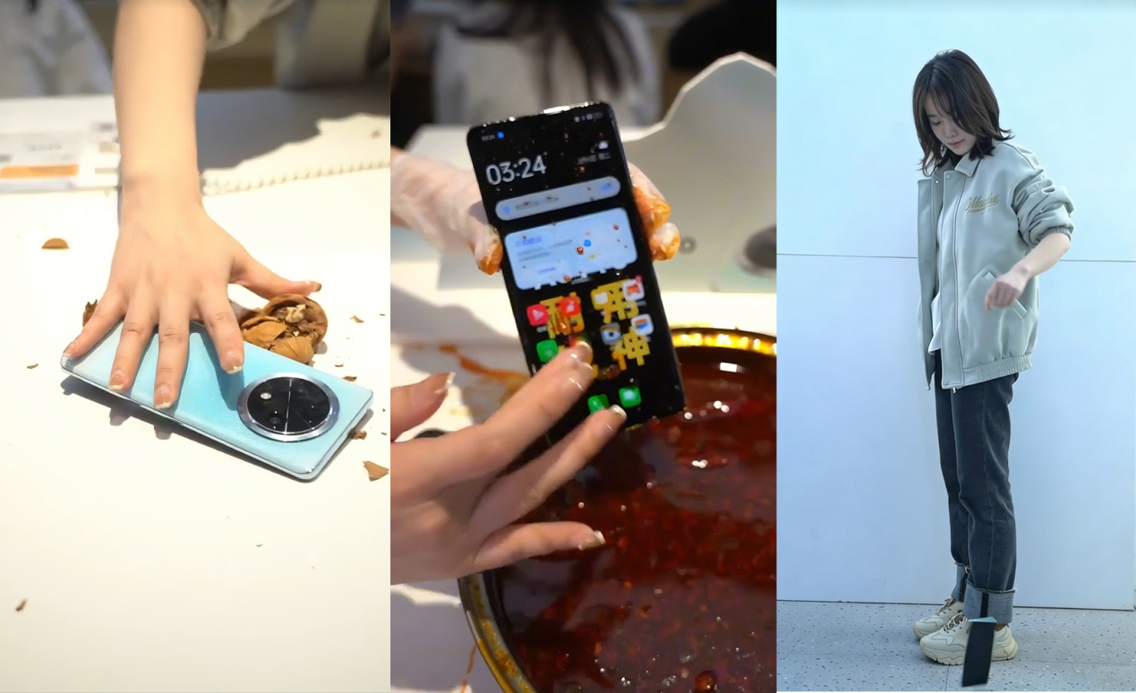 手机砸碎几个核桃,甩出口袋自由落体,浸入红油火锅,拍几条街外的路牌……在南京新街口Suning Max店内,3C顾问引导用户参与实验,感受新款手机的性能提升。参与现场体验的用户纷纷表示,这些实验比理解抗摔等级、防水标准、镜头像素等专业术语,更直观生动,也更有说服力。