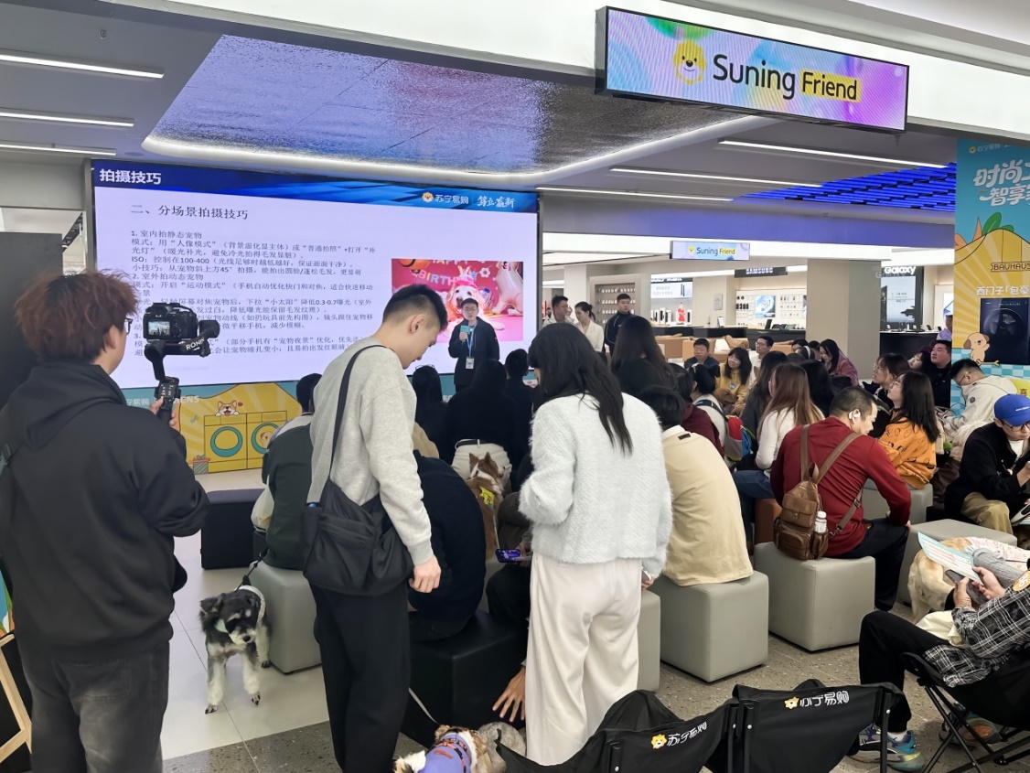 成都天府立交Suning Max店的“宠物摄影课”场场爆满。智能手表、手机、平板与台灯被组合成一套“宠物摄影系统”:台灯调节宠物眼神光,平板作为反光板优化光影,手表遥控手机实现无打扰拍摄。家长们带着“毛孩子”边学边练,互动热烈。带着柯基前来体验的张女士说:“不仅给狗狗拍了美照,我们也交到了新朋友。”分享课程的3C顾问表示,通过场景体验帮用户选对产品,只是服务的第一步,持续关注用户的延伸需求,并提供保障,才是长期课题。