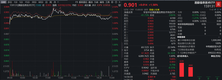 【中国版OpenAI冲刺港交所!半导体芯片产业链大反攻,港股信息技术ETF159131)收涨1.58%