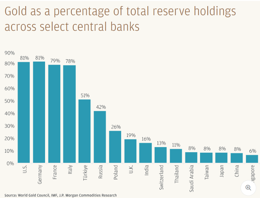 “这种下降更多是央行行为上的机械性变化,而非结构性转变,”报告指出。“在金价处于每盎司4000美元左右或更高水平时,央行只需购买较少的黄金吨数,即可将其黄金储备占比调整到理想百分比。”