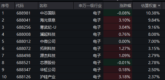 【科创芯片50ETF(588750)标的指数前十大成分股】