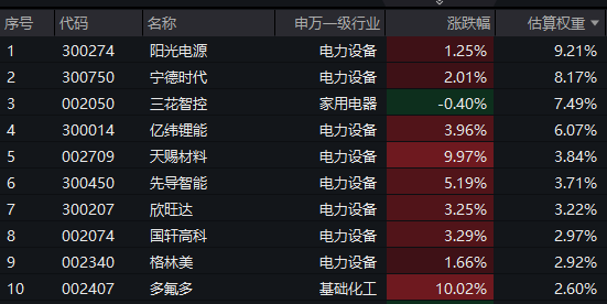 电池50ETF(159796)标的指数成分股掀涨停潮,天华新能、多氟多、天赐材料等电池材料股涨停!先导智能涨超9%,亿纬锂能、欣旺达、国轩高科等涨超3%,宁德时代涨1.93%,格林美、阳光电源等跟涨。