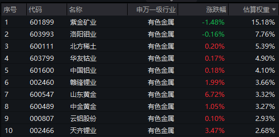 风险提示:基金有风险,投资需谨慎。投资人应当阅读《基金合同》《招募说明书》《产品资料概要》等法律文件,了解基金的风险收益特征,特别是特有风险,并根据自身投资目的、投资经验、资产状况等判断是否和自身风险承受能力相适应。基金管理人承诺以诚实信用、谨慎尽责的原则管理和运用基金资产,但不保证基金一定盈利或本金不受损失。以上基金属于中等风险等级(R3)产品,适合经客户风险承受等级测评后结果为平衡型(C3)及以上的投资者。请投资者关注指数化投资的风险以及集中投资于细分有色指数成分股的持有风险,请关注部分指数成分股权重较大、集中度较高的风险,请关注指数化投资的风险、ETF运作风险、投资特定品种的特有风险等。文中提及个股仅为指数成份股客观展示列举,本文出现信息只作为参考,投资人须对任何自主决定的投资行为负责。本文中的任何观点、分析及预测不构成对阅读者任何形式的投资建议。