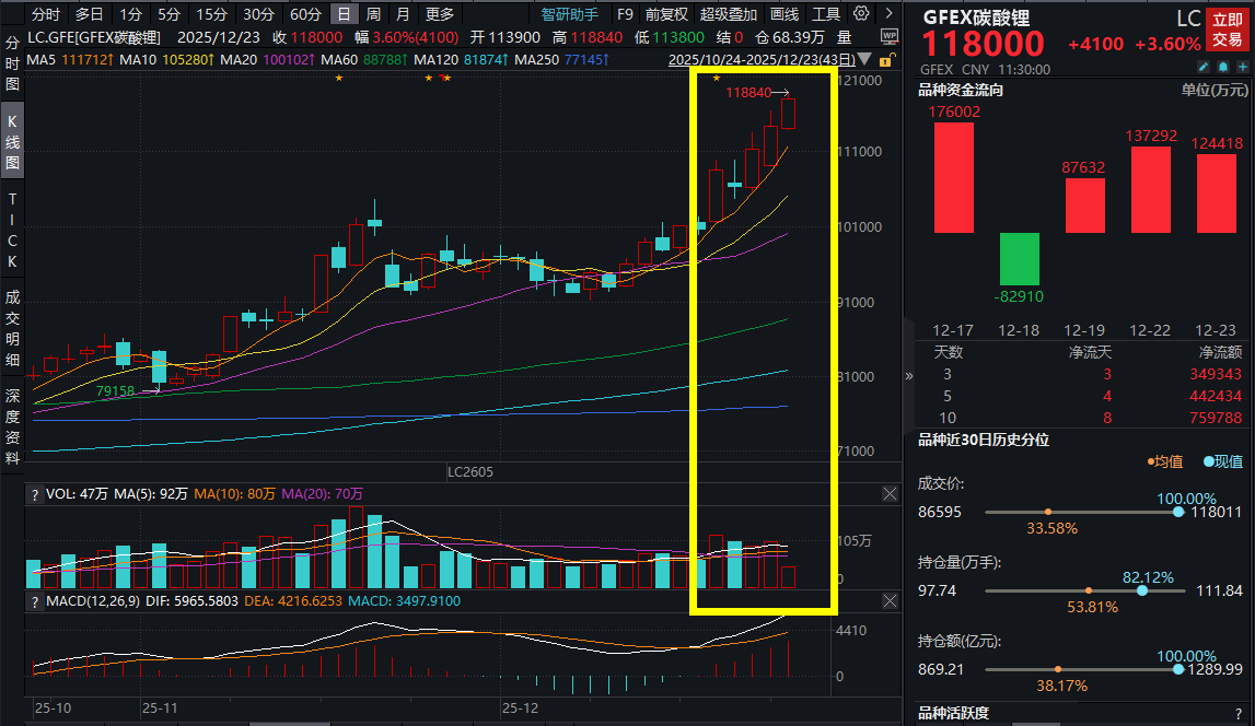行业消息面上,2025年12月22日,吉林省地矿局传来重磅消息:伊通地区金矿资源量预计将突破100吨。无独有偶,12月16日,山东省烟台市正式宣布:在莱州三山岛北部海域发现国内唯一、亚洲最大的海底巨型金矿。