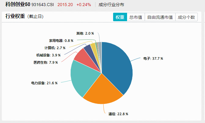 值得关注的是,双创龙头ETF标的指数重仓电子、通信、电力设备板块,截至最新,合计权重占比超82%,具体来看: