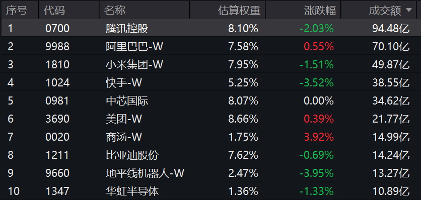注:以上为恒生科技指数成分股,仅做展示,不作为个股推介。