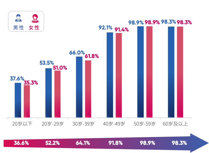随着年龄的增长,眼底异常检出率逐渐升高,特别是40岁及以上人群,眼底异常检出率迅速攀升至90%以上,每10人中就有超9人存在异常,其中,视网膜血管异常作为头号眼底异常,40岁及以上人群的检出率更是40岁以下人群的9.3倍。