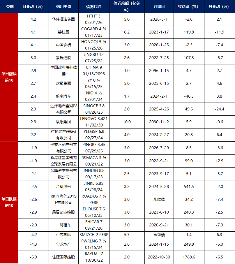 3. 中资美元债每日价格变动(截至12月23日收盘)