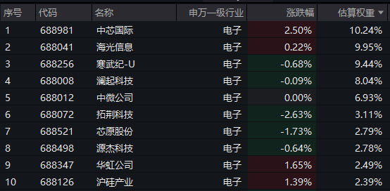 【科创芯片50ETF(588750)标的指数前十大成分股】