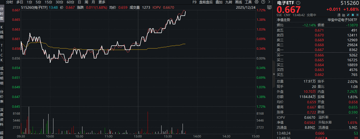 ETF盘中资讯|芯片赛道传来密集利好!中芯国际涨价+英伟达明确H200交付时间,电子ETF(515260)拉升1.6%冲击3连阳!