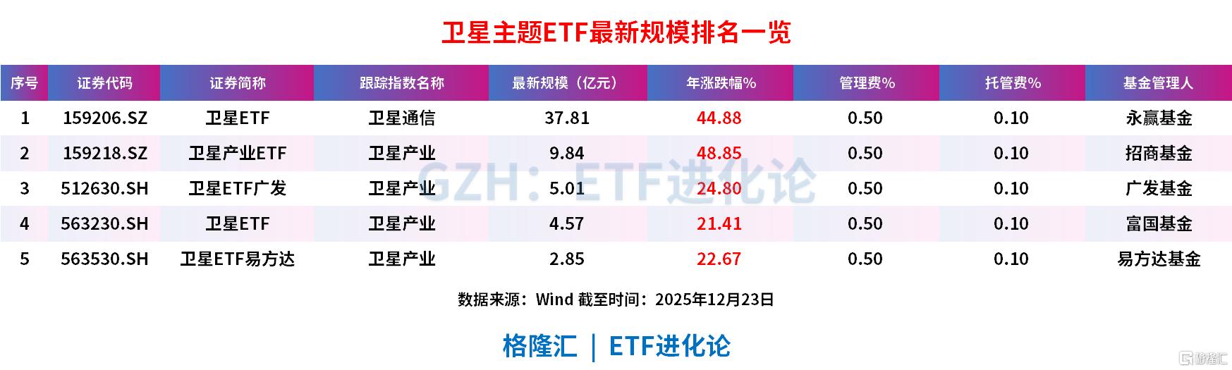 目前跟踪卫星产业指数规模最大的是招商基金卫星产业ETF。