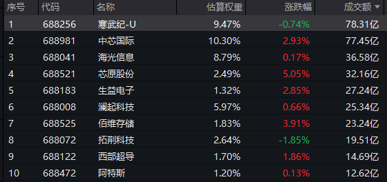 风险提示:基金有风险,投资需谨慎。换手率高意味着市场对此标的的投资分歧大,潜在投资风险较高。投资人应当阅读《基金合同》《招募说明书》《产品资料概要》等法律文件,了解基金的风险收益特征,特别是特有风险,并根据自身投资目的、投资经验、资产状况等判断是否和自身风险承受能力相适应。基金管理人承诺以诚实信用、谨慎尽责的原则管理和运用基金资产,但不保证基金一定盈利或本金不受损失。科创50指数ETF(588870)属于较高风险等级(R4)产品,适合经客户风险等级测评后结果为进取型(C4)及以上的投资者。文中提及个股仅为指数成份股客观展示列举,本文出现信息只作为参考,投资人须对任何自主决定的投资行为负责。本文中的任何观点、分析及预测不构成对阅读者任何形式的投资建议。