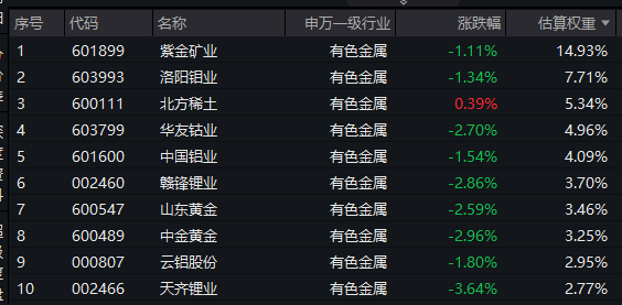 风险提示:基金有风险,投资需谨慎。投资人应当阅读《基金合同》《招募说明书》《产品资料概要》等法律文件,了解基金的风险收益特征,特别是特有风险,并根据自身投资目的、投资经验、资产状况等判断是否和自身风险承受能力相适应。基金管理人承诺以诚实信用、谨慎尽责的原则管理和运用基金资产,但不保证基金一定盈利或本金不受损失。以上基金属于中等风险等级(R3)产品,适合经客户风险承受等级测评后结果为平衡型(C3)及以上的投资者。请投资者关注指数化投资的风险以及集中投资于细分有色指数成分股的持有风险,请关注部分指数成分股权重较大、集中度较高的风险,请关注指数化投资的风险、ETF运作风险、投资特定品种的特有风险等。文中提及个股仅为指数成份股客观展示列举,本文出现信息只作为参考,投资人须对任何自主决定的投资行为负责。本文中的任何观点、分析及预测不构成对阅读者任何形式的投资建议。