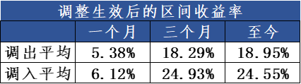 1. 调入组合“未来表现”显著跑赢调出组合: