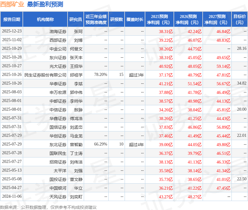 证券之星消息,2025年12月25日西部矿业(601168)发布公告称公司于2025年12月23日接受机构调研,华福证券参与。