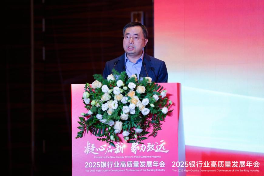 会上,中国银行业协会副秘书长殷有祥出席论坛并发表致辞,他指出,银行业作为国民经济的核心支柱,既是服务实体经济的主力军,也是防控金融风险的主战场,更是推进金融创新的主阵地。当前,我国经济发展进入新阶段,“十五五”规划对金融服务高质量发展提出了新的更高要求,银行业发展正处于多重挑战与战略机遇并存的关键时期,一方面面临宏观经济结构调整、数字化浪潮冲击、市场竞争加剧等外部压力。另一方面也迎来服务新质生产力、深化金融供给侧结构性改革、构建新发展格局的重要机遇窗口,如何在变局中开新局、在守正中谋创新,成为全行业共同面对的时代课题。