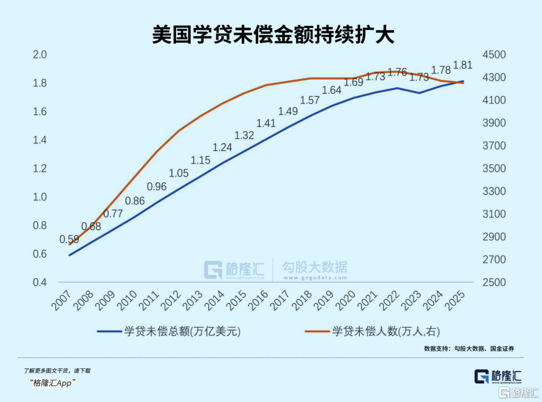 教育:助学贷款债务规模达1.7万亿美元,平均每个毕业生负债3.7万美元,违约率11.2%,一旦违约信用分暴跌,直接阻断职业上升通道;