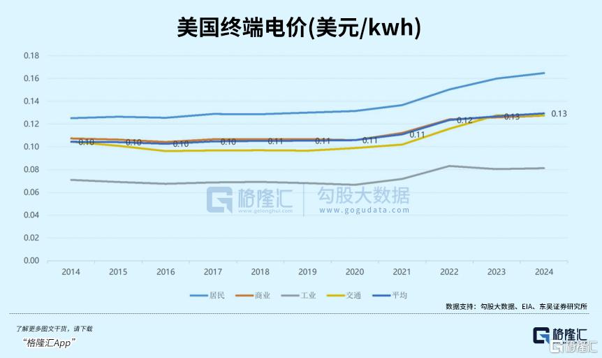 电力短缺直接推高了用电成本,美国终端电价逐年上涨,2024年平均电价已达0.13美元/kwh,而数据中心密集区域的批发电价波动更大,企业不得不通过长期协议锁定价格。解决电力缺口、保障供电稳定,成为美国AI产业发展的当务之急,也为储能市场打开了广阔空间。