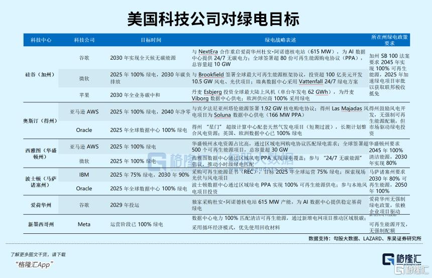 目前,谷歌、Meta、微软等科技巨头纷纷制定零碳目标,2030年前实现数据中心100%绿电供应成为行业共识,混合绿电 市电的组合供电方式已成为主流。