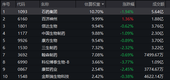 港股通创新药ETF(159570)标的指数权重股多数飘绿:科伦博泰生物-B跌超3%,三生制药、康哲药业跌超2%,石药集团、中国生物制药跌超1%,信达生物、康方生物、翰森制药微跌。