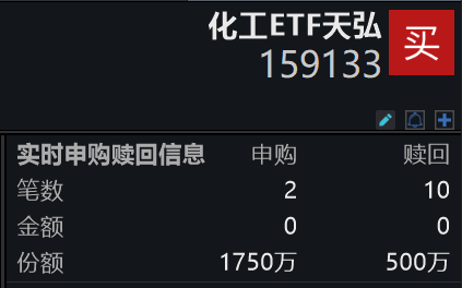 值得一提的是,化工ETF天弘(159133)半日获资金净申购1250万份。