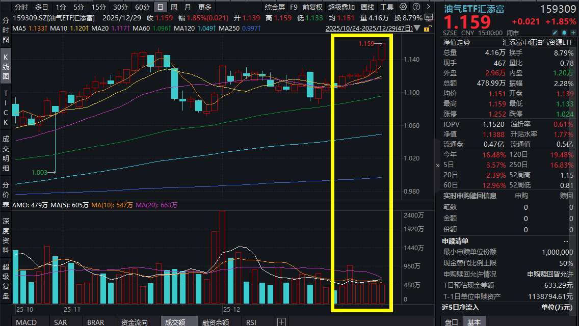 新名字,新气象!油气ETF汇添富(159309)正式更名,翘尾收涨1.85%,喜提六连阳!三桶油集体上冲,油价后市怎么看?