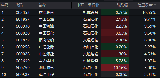【油气ETF汇添富(159309)标的指数前十大成分股】