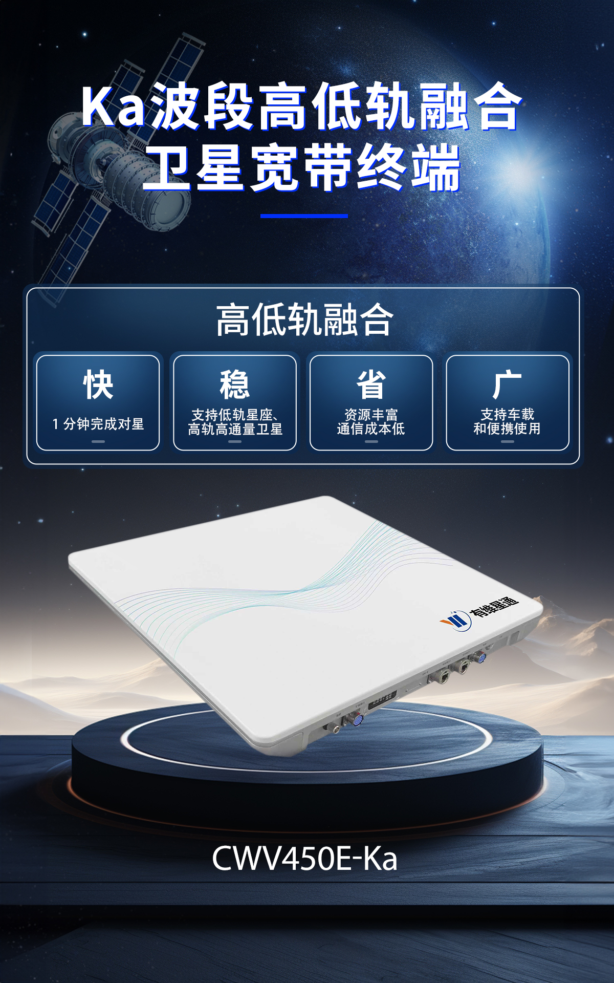 宏伟的战略需要扎实的产品与市场步伐来承载。围绕既定技术路线,震有科技已推出多款卫星终端产品,并于近期发布CWV450E-Ka 高低轨融合卫星宽带终端。该产品通过高低轨融合架构,支持低轨星座与中星26卫星的灵活切换,在满足当前低轨网络接入需求的同时,为未来多轨道协同应用预留扩展空间,体现了“兼容当下、面向未来”的产品设计思路。