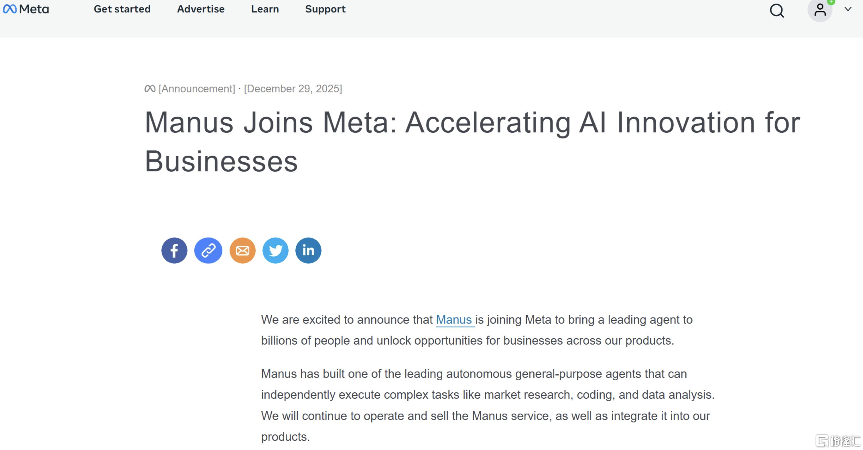 Meta宣布收购AI智能体公司Manus
